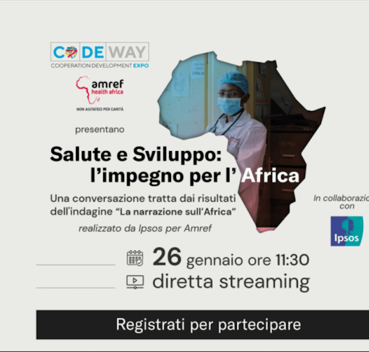 Il 26 gennaio alle ore 11.30 in diretta streaming sulla piattaforma Codeway si discute di equità vaccinale, tutela della salute globale e percezione dell’Africa con la Viceministra Sereni, il Professor Ricciardi e l’esperta di comunicazione della migrazione Tana Anglana, a partire dall’indagine Ipsos per Amref Italia “La narrazione sull'Africa”
