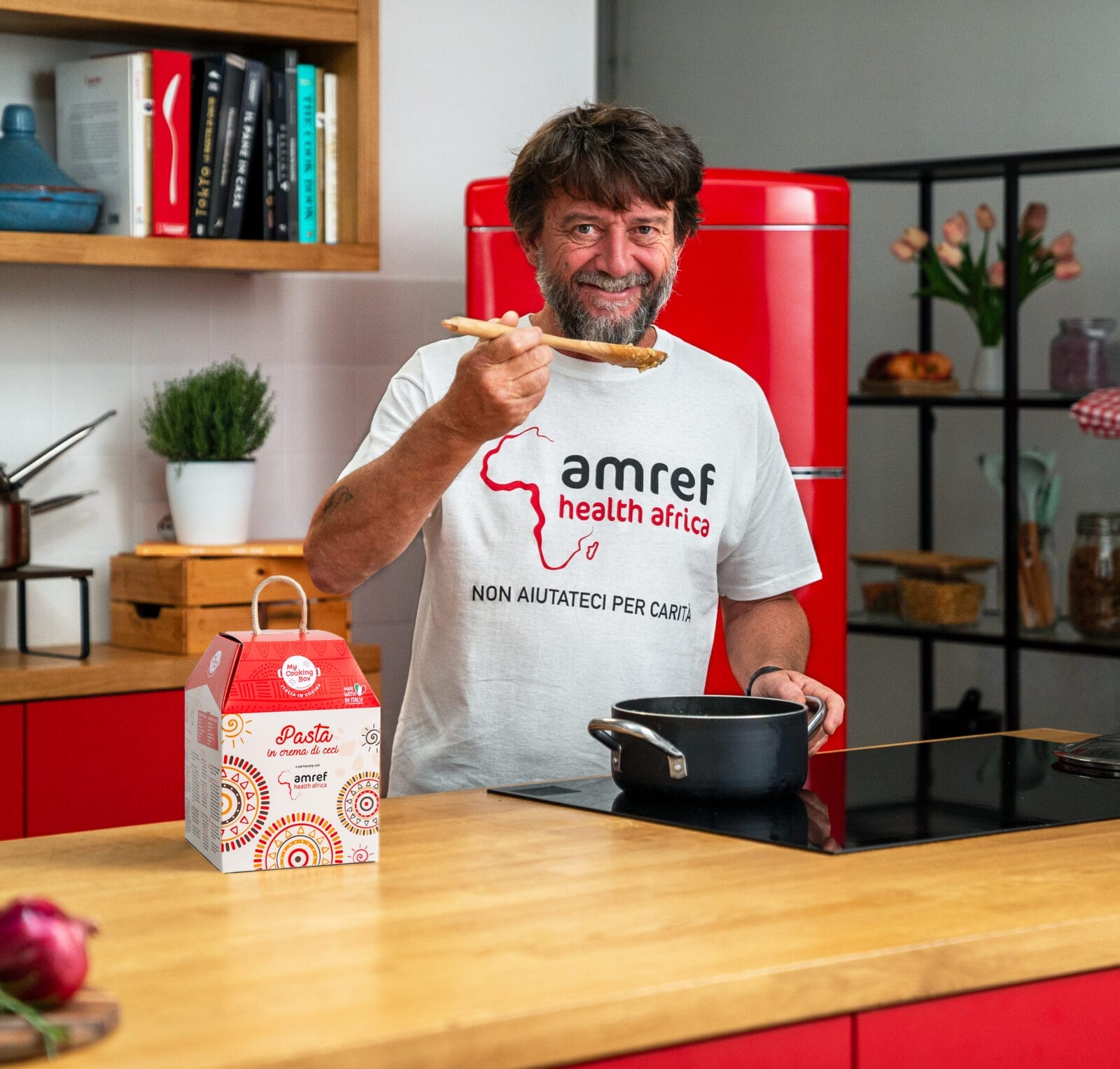 Ad amplificare il progetto, un testimonial d’eccezione di Amref: il navigatore oceanico Giovanni Soldini. Un volto legato da tempo all’organizzazione che ha deciso di contribuire - a titolo gratuito -proponendo una sua ricetta personale per la speciale box. "Pasta e ceci è una ricetta semplice ma nutriente, che faccio spesso in barca" afferma Soldini "Ideale per questa iniziativa, che vede al centro le drammatiche difficoltà alimentari di molte comunità africane, spesso causate da siccità e surriscaldamento del pianeta. I legumi sono perfetti, perché richiedono poca acqua."