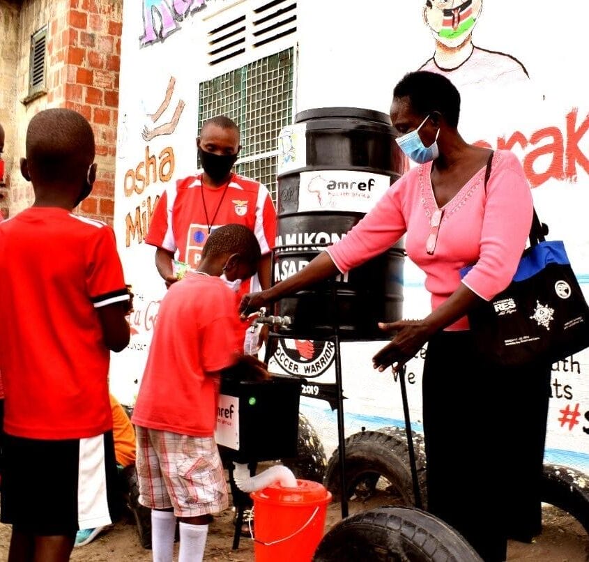 Grazie al progetto “COVID-19 Response”, Amref e Coca-Cola Foundation hanno messo a disposizione dei dispositivi per il lavaggio delle mani – 14 stazioni in tre insediamenti informali – stanno svolgendo attività di formazione e informazione e utilizzano, per sensibilizzare le comunità, poster, volantini, immagini rappresentative e alcuni “gadget” su cui vengono stampati messaggi chiave.